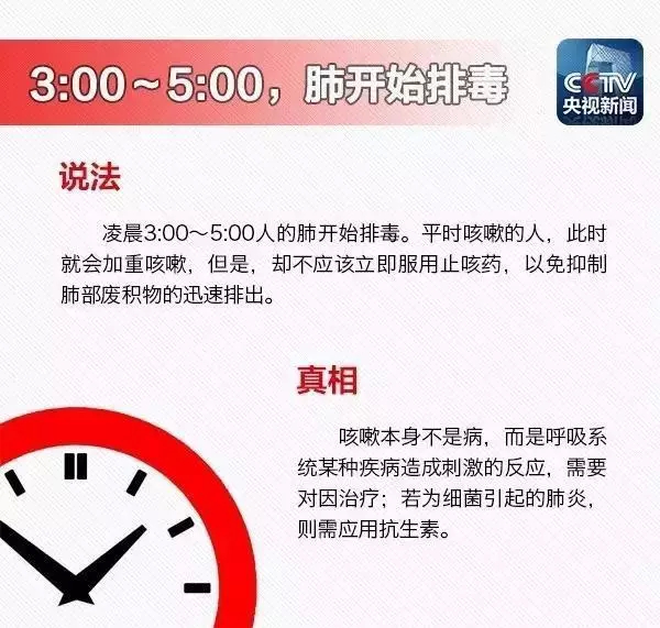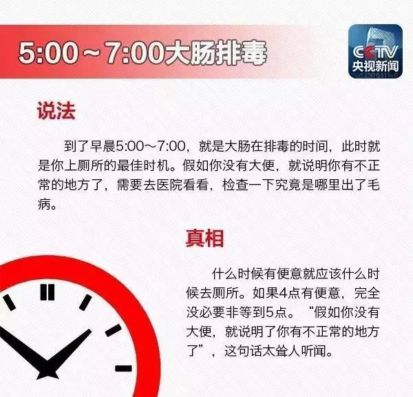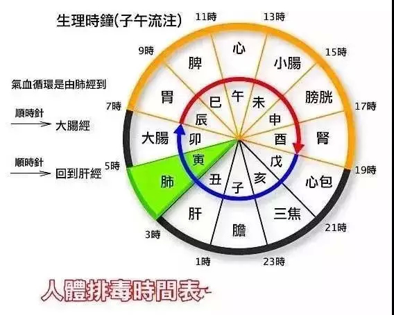 大家是不是觉得这个时间表特别高大上?你看,上面有人体各个内脏结构的具体名称,还结合了中国古代计时制度,每个时辰都有对应的器官排毒,包含“气血循环”,逆时针,顺时针都有......第一眼仿佛像中医中的养生时间表,让人觉得特别的让人信服。因此,这个时间表可是在朋友圈里面疯传了很久很久,让无数的爸爸妈妈们疯转的养生大法!