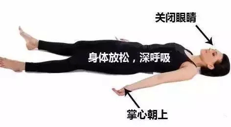 双手放在身体两侧,和身体微微分开约15公分,掌心朝上。双腿打开到自己舒服的宽度。头部摆正与脊椎呈一直线,脸朝上不应偏向任何一边。
